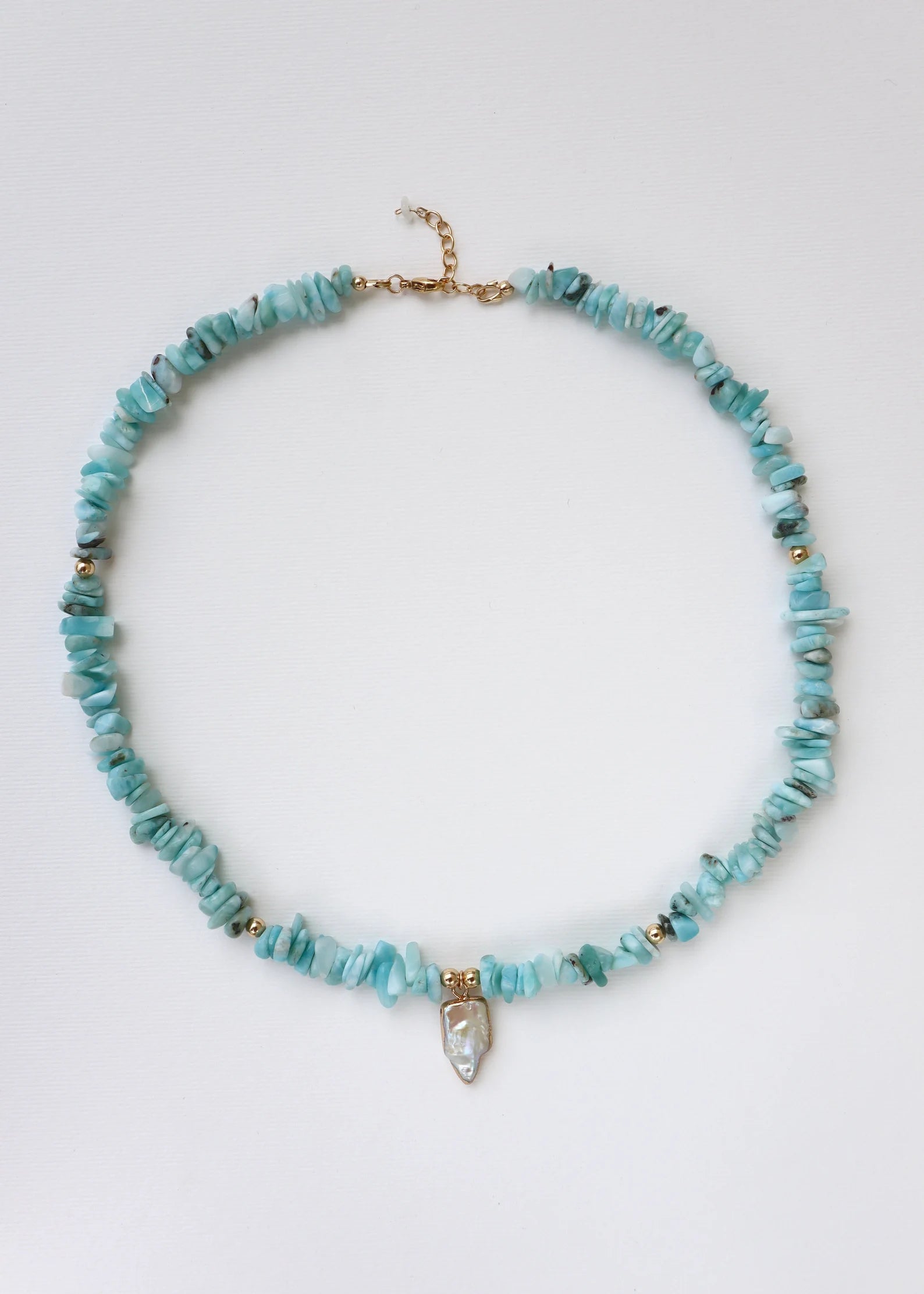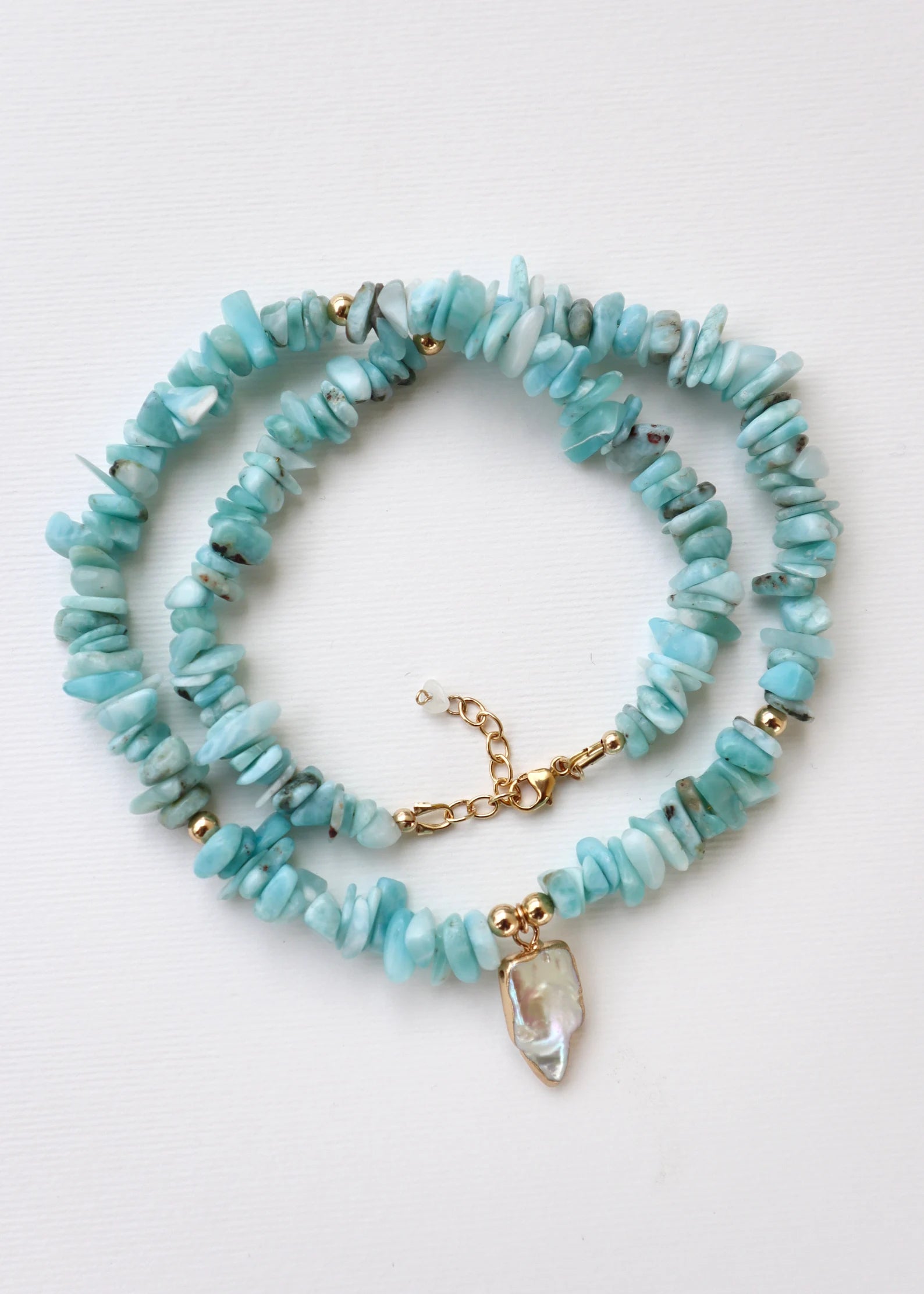 Aquamarine Necklace | Mother of Pearl Pendant | Clarity & Intuition