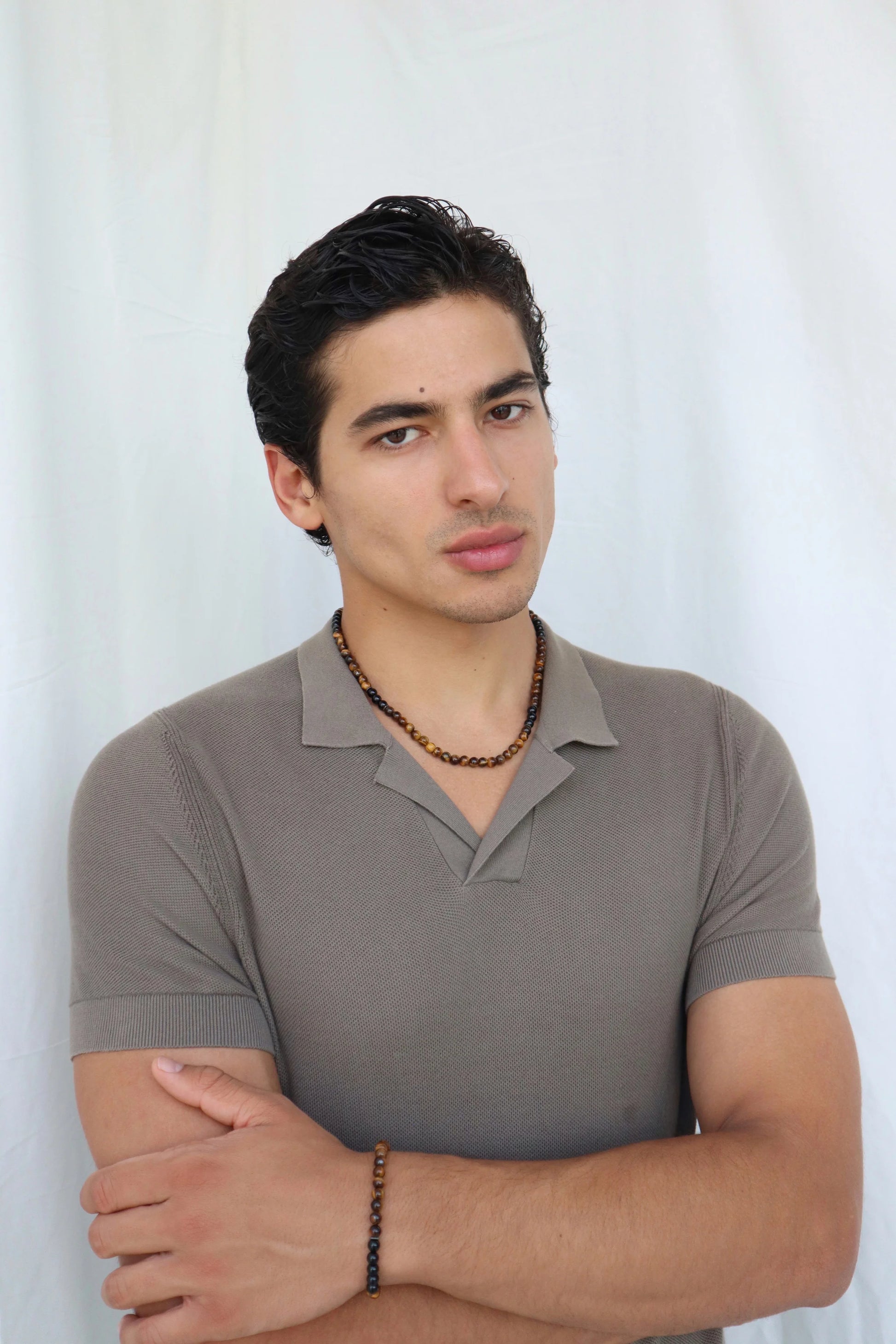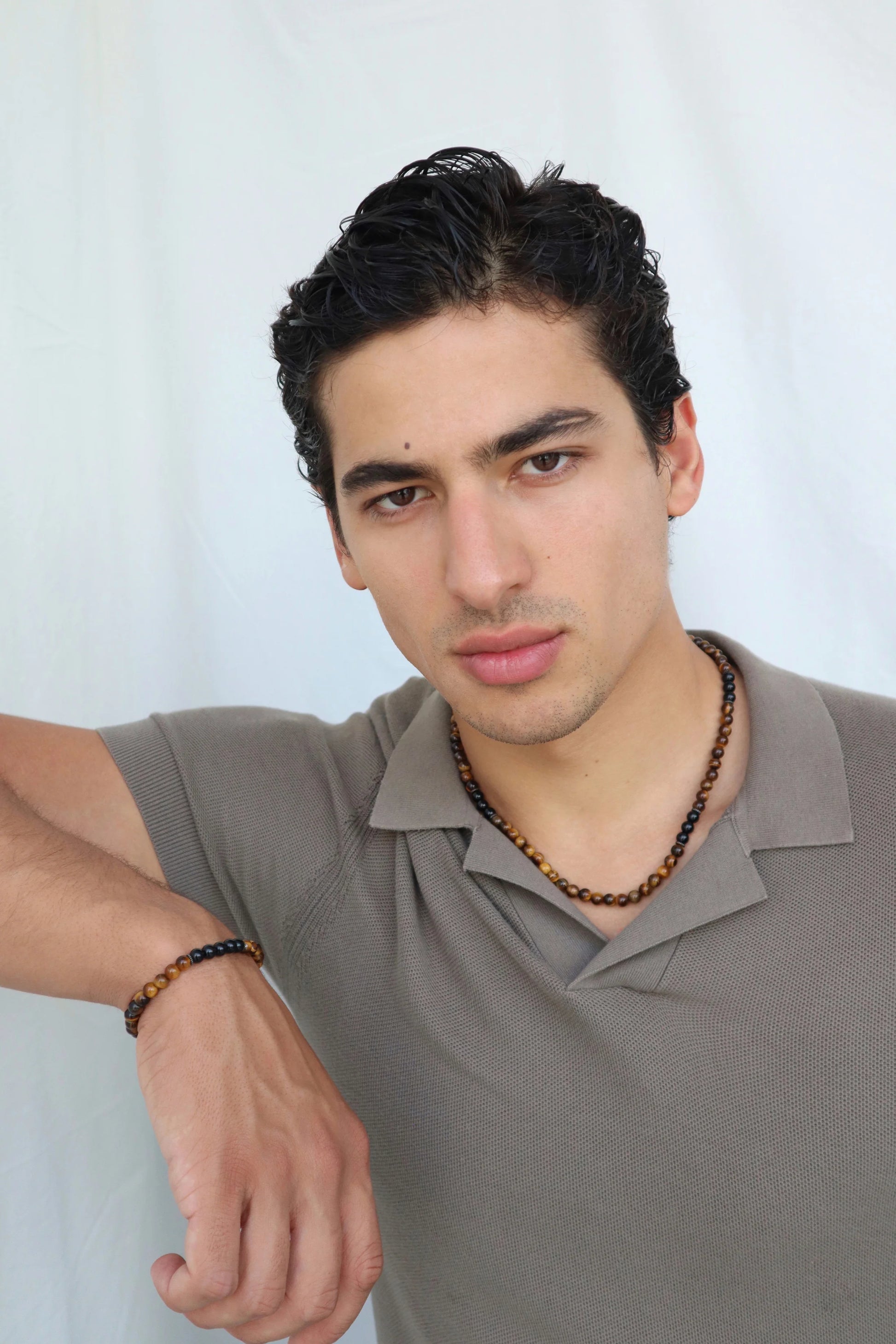 Tiger’s eye boosts confidence and sharpens willpower, while onyx offers protection and emotional strength. A powerful piece for inner strength and fearless presence.